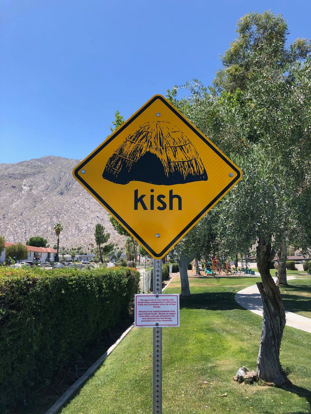 One of a dozen signs installed within public parks in Palm Springs, CA. This was a project funded by the Palm Springs Arts Council in 2020.
